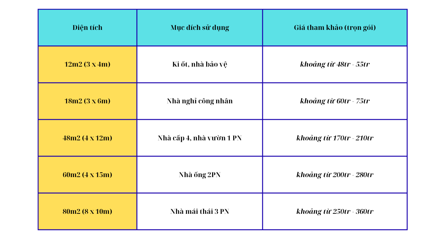 Nếu trước đây nhiều người còn e ngại “nhà lắp ghép có bền không”, thì năm 2025, mô hình này đã chứng minh được tính linh hoạt và tiết kiệm chi phí so với xây truyền thống. Theo các đơn vị thi công uy tín, giá hoàn thiện mức phổ biến dao động 3 – 4 triệu đồng/m² cho gói tiêu chuẩn và 4,2 – 5,5 triệu đồng/m² cho gói khá, các thiết kế cao cấp (villa, homestay, mái vòm…) có thể lên 5,3 – 9,7 triệu đồng/m² tùy vật tư hoàn thiện.