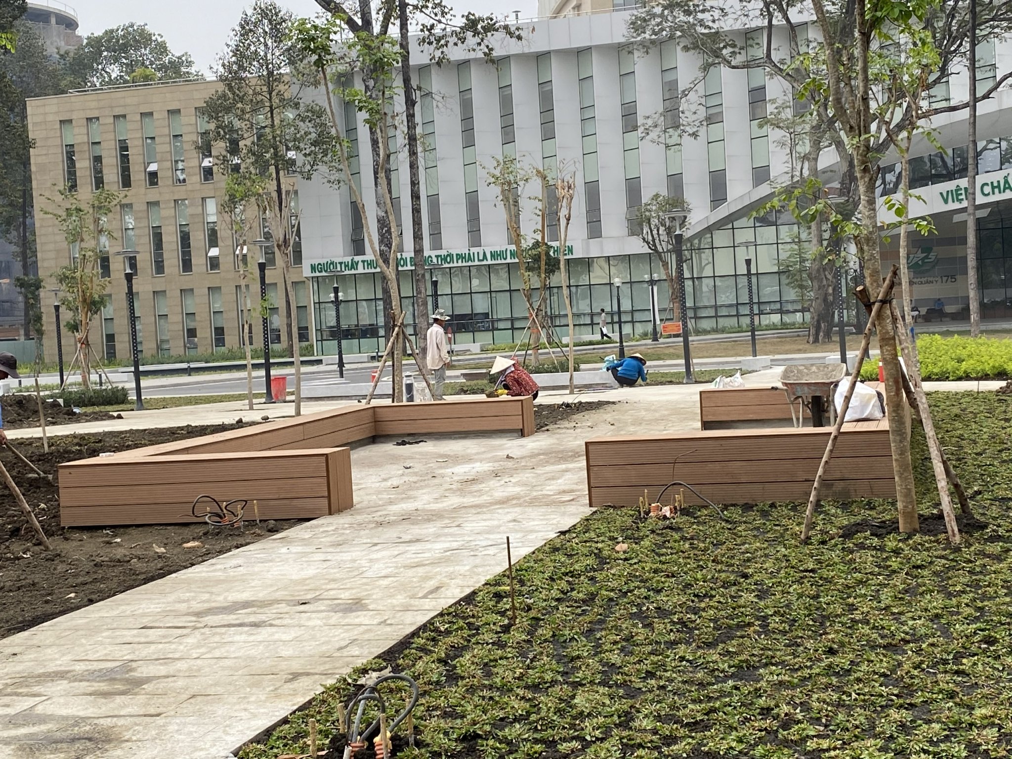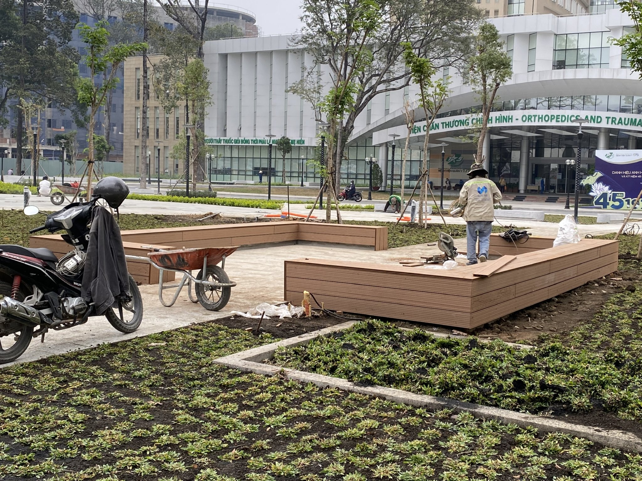 Vie-Home vinh dự là đơn vị thi công hạng mục ghế ngồi ngoài trời bằng gỗ nhựa composite trong khuôn viên cảnh quan Bệnh viện Quân y 175 – một trong những bệnh viện tuyến trung ương trọng điểm tại TP.HCM. Dự án không chỉ góp phần nâng cao tiện ích cho người sử dụng, mà còn thể hiện sự chuyển mình trong xu hướng thiết kế bền vững, thân thiện với môi trường trong không gian công cộng.