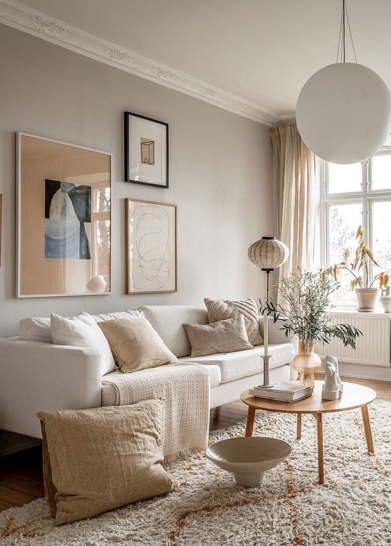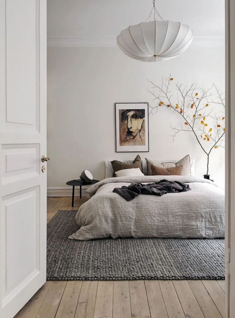 Trang trí kiểu Bắc Âu không cầu kỳ: thường chỉ là một vài tranh treo tường trắng đen, chậu cây xanh, đèn treo nghệ thuật hoặc vải dệt thủ công. Tất cả tạo nên cảm giác thư giãn, dễ chịu và gần gũi.