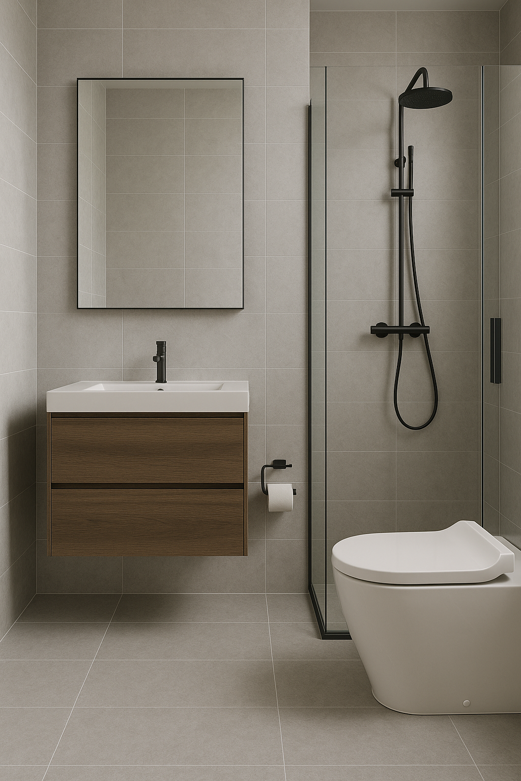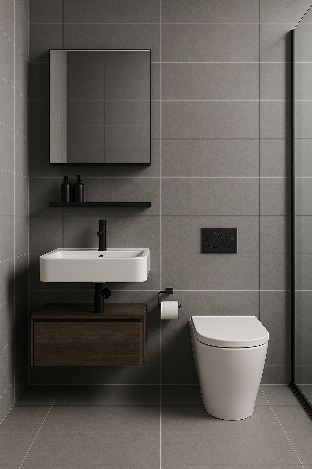 Thiết bị vệ sinh vuông vức, thiết kế tối giản.