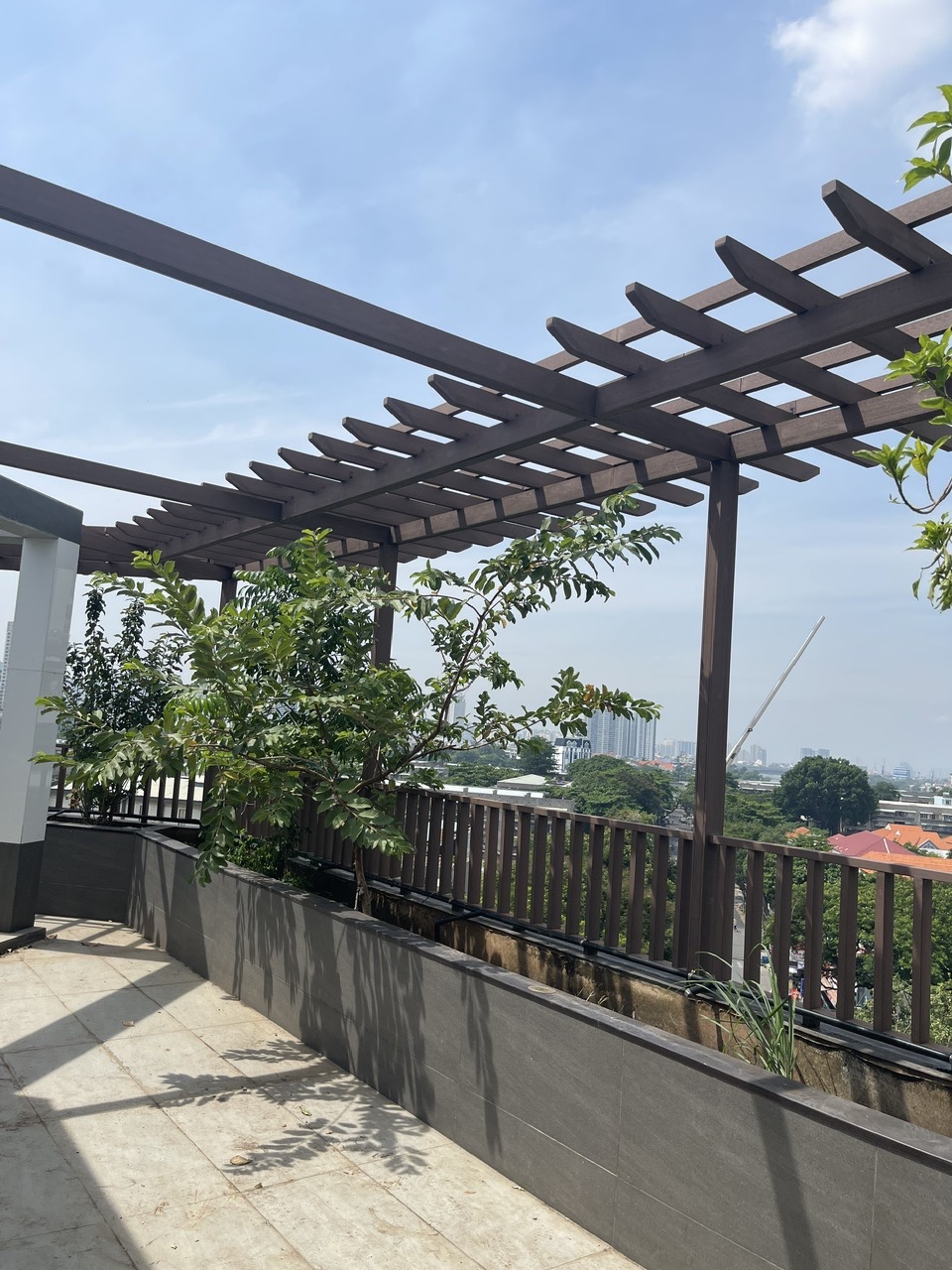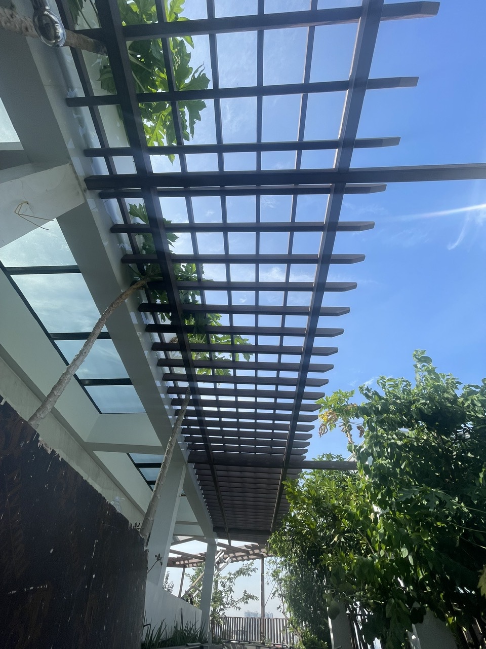 - Giàn hoa sân thượng: Thiết kế kết hợp thanh lam 40x90 và hệ trụ – đà 60x100, tạo điểm nhấn cảnh quan và không gian nghỉ ngơi lý tưởng giữa lòng thành phố.