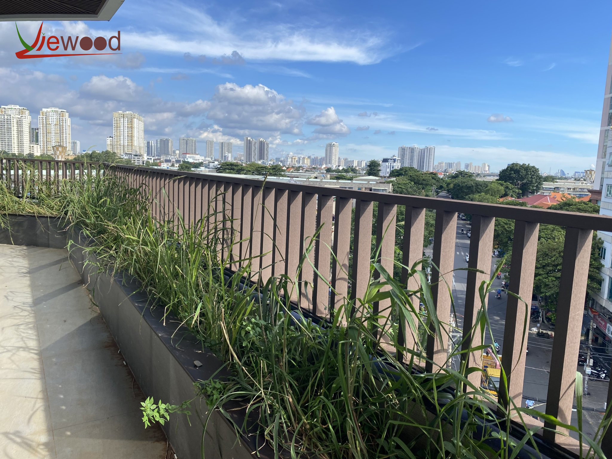 - Hệ lan can sử dụng thanh lam gỗ nhựa 30x60: Bền vững với thời tiết, đảm bảo an toàn sử dụng đồng thời góp phần nâng tầm kiến trúc tổng thể.